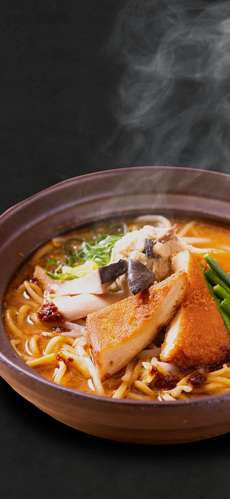最後までアツアツの状態を楽しみいただけるように土鍋でラーメンをご提供しております。
